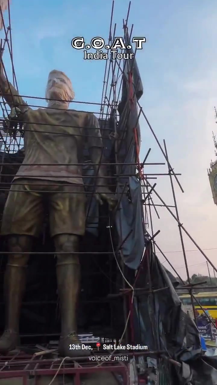 据thebharatsquad报说念,位于加尔各答北部的巨型梅西雕像的斥地使命已参预终末阶段,蒙蒂·保罗团队正在进行终末的名义搞定,而脚手架仍然环绕着雕像。