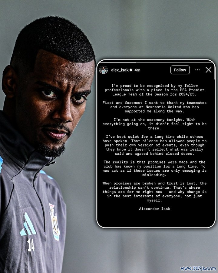 8月19日:伊萨克缺席PFA授奖礼,通过社媒声明指控纽卡挣扎本心,称"离婚对两边王人是最好遴荐"。
