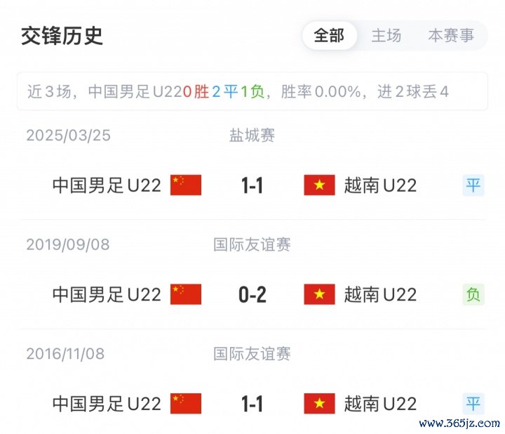 两边近3次交锋,国足U22对阵越南2平1负未能取胜。本次熊猫杯国足U22将分离与越南U22、韩国U22、乌兹别克斯坦U22进行较量。