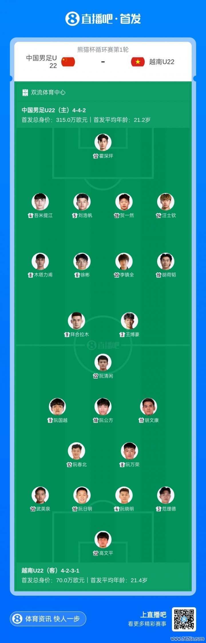 11月12日讯 北京时辰19:35,熊猫杯第一轮,国足U22vs越南U22,赛前,两边首发出炉。国足U22方面,王钰栋因过于疲惫未投入这次熊猫杯,彭啸因伤缺席,蒯纪闻、刘诚宇、依木兰、陈泽仕等东谈主因为全运会任务本场比赛相同缺席。