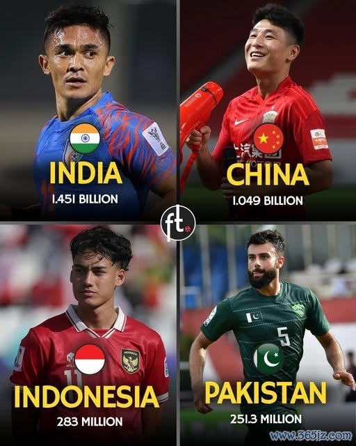 中国,总东谈主口14.1亿,进入过1次寰宇杯;