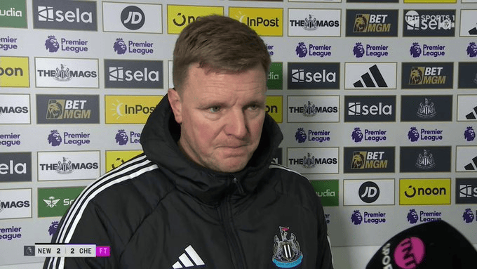 虎扑12月20日讯纽卡斯尔主莳植埃迪豪在2-2战平切尔西的赛后,经受TNTSport采访。