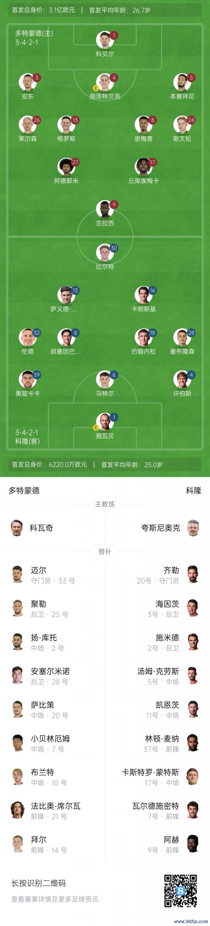 10月25日讯 德甲第8轮,多特主场迎战科隆比赛行将打响。赛前首发出炉。
