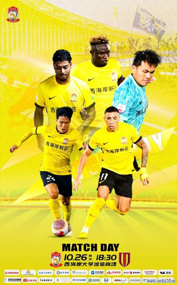 青岛西海岸首发:1-李昊、5-里切利(F)、6-徐彬、22-杨希、17-陈柏良、20-何龙海、23-马特乌斯(F)、24-段刘愚、9-阿皆兹(F)、10-内尔松卢斯(F)、11-戴维森(F)