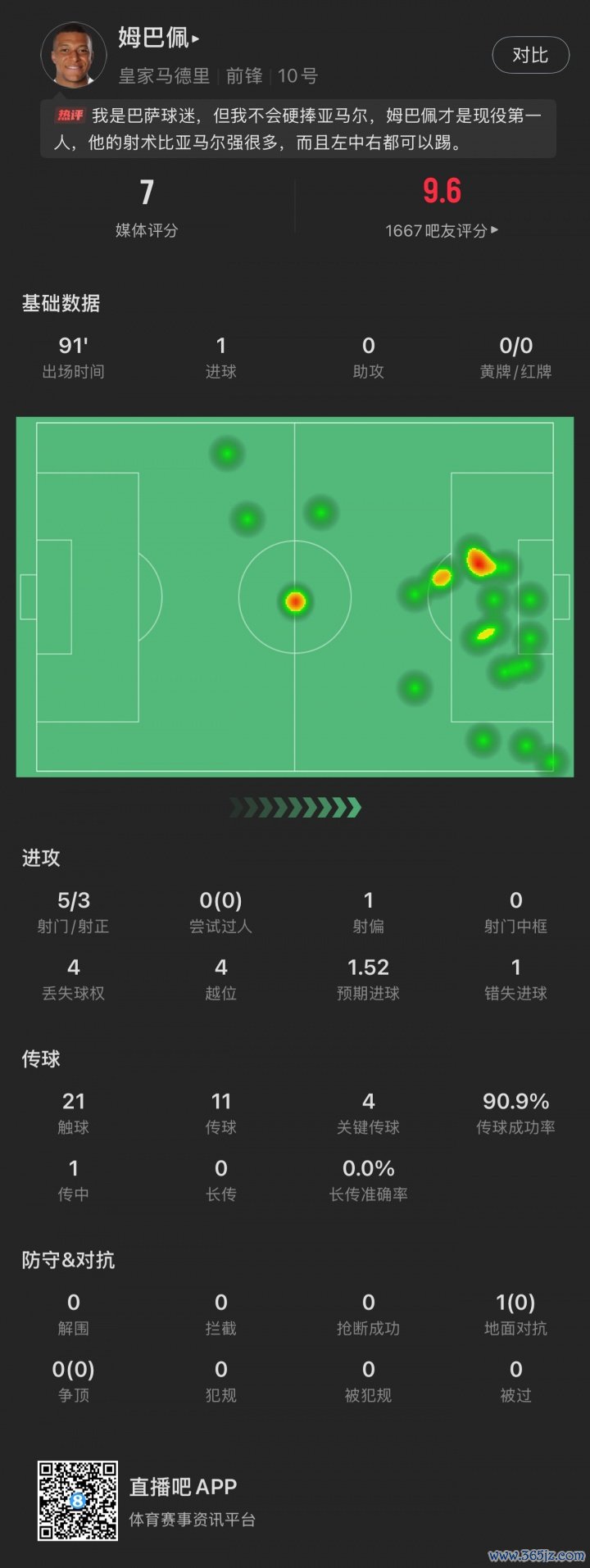 10月27日讯 皇马2-1巴萨,纵脱国度德比四连败。姆巴佩破门+失点+两球被吹,第90分钟被换下。