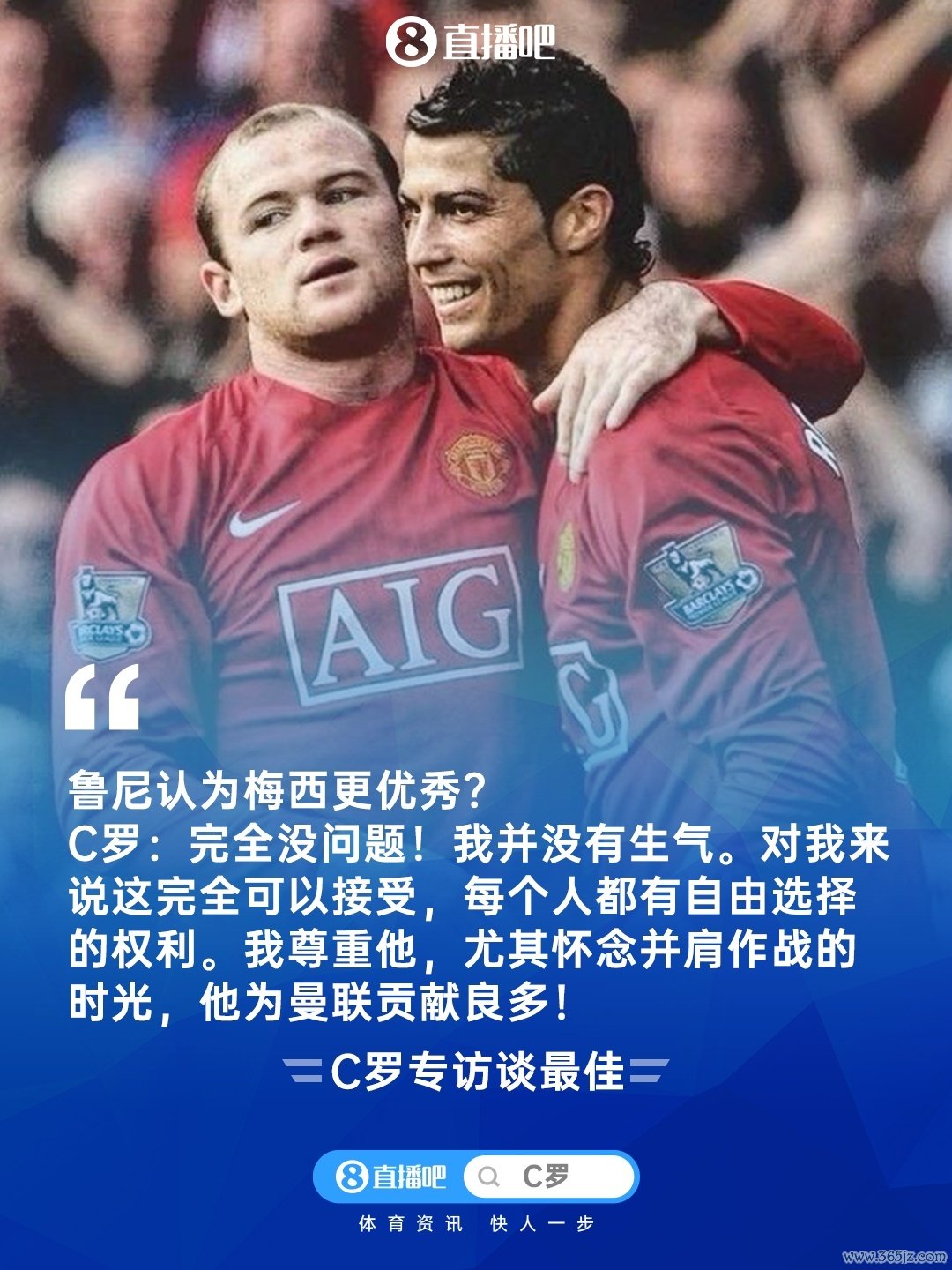 摩根:韦恩·鲁尼,你的老队友上周说他并不改悔你(尽管有东谈主那么说),他其实很可爱你,称你为天才。他说你们的相干比外界遐想的要亲密,但他仍然认为梅西更优秀。