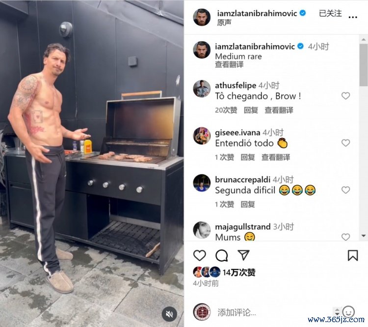 肌肉线条也曾显着!44岁伊布晒赤裸上身烤肉视频:五分熟