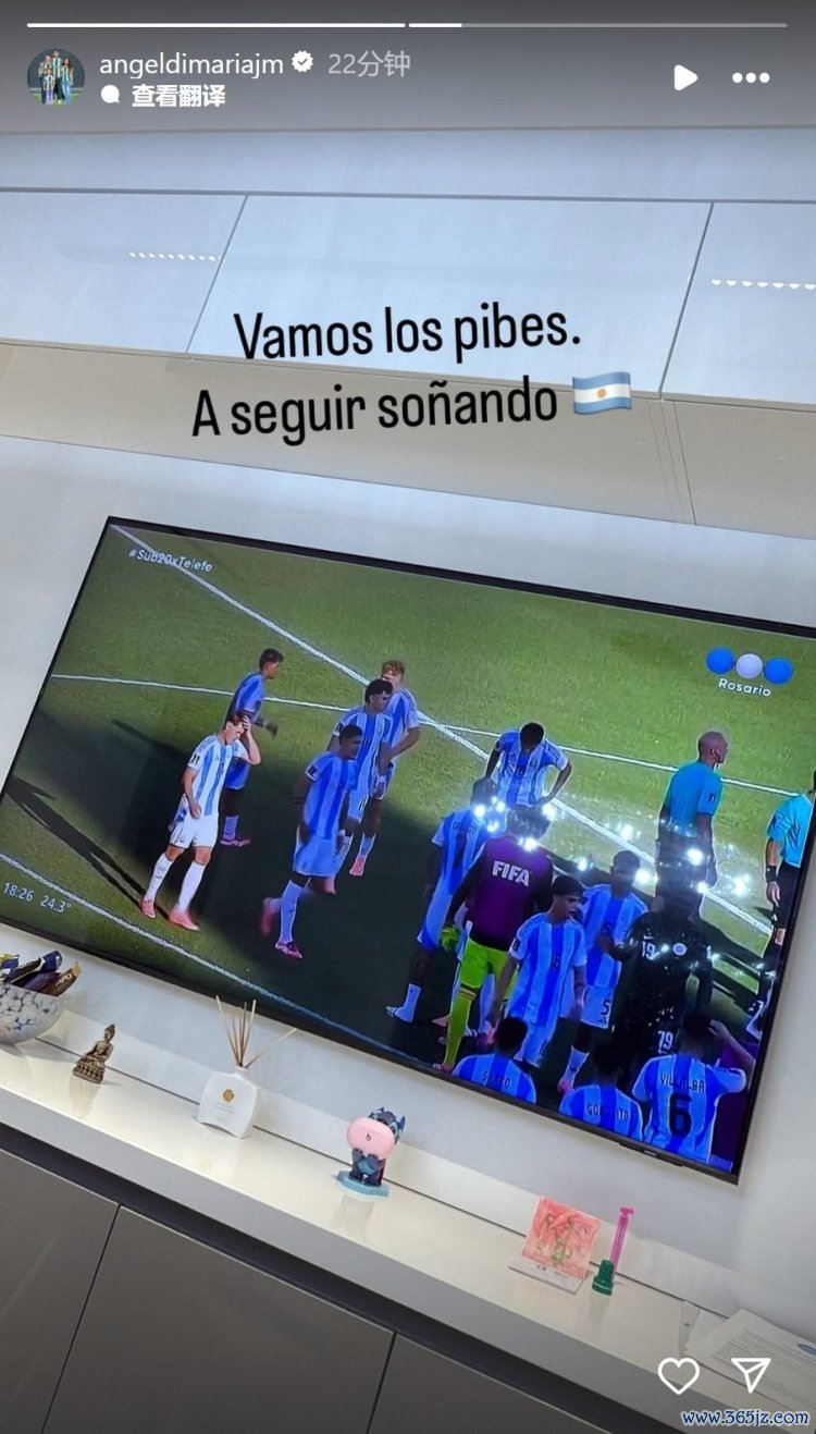 迪马利亚通过电视不雅看了阿根廷U20的比赛,他在酬酢媒体上晒出像片,配文:“干得漂亮,小伙子们,连接追赶梦思!”