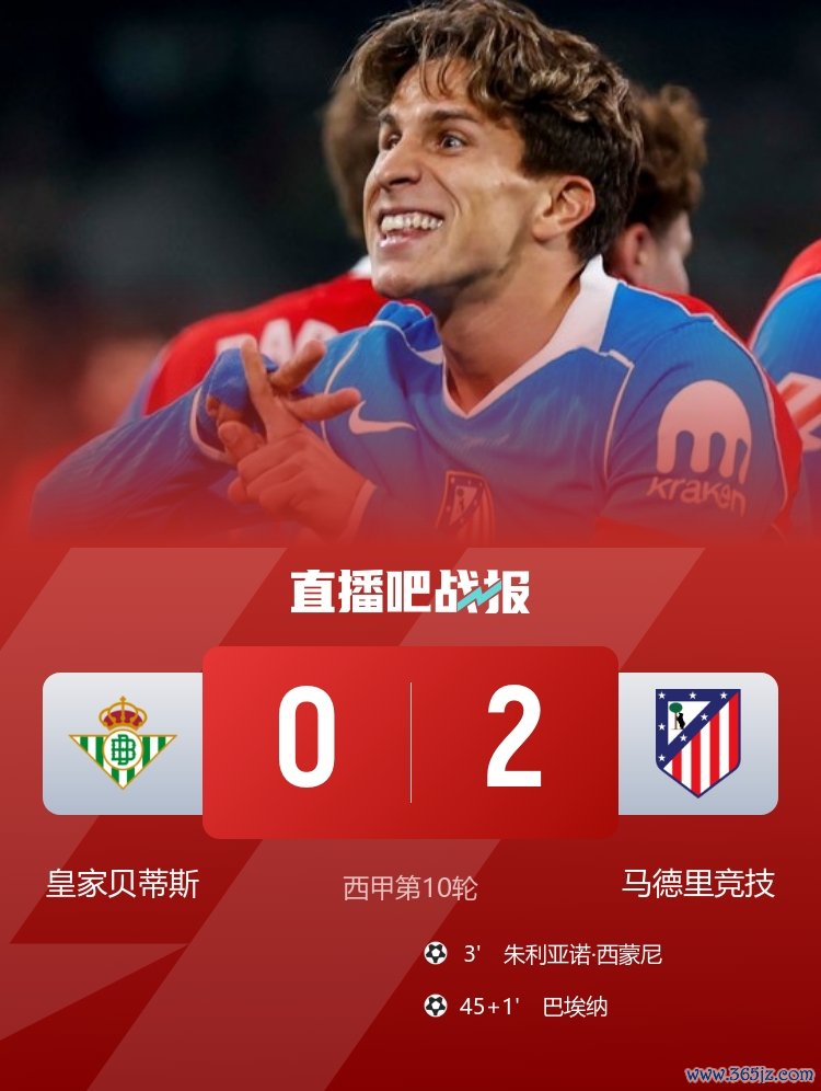 西甲-马竞2-0客胜贝蒂斯 小西蒙尼天下波巴埃纳处子球小蜘蛛助攻