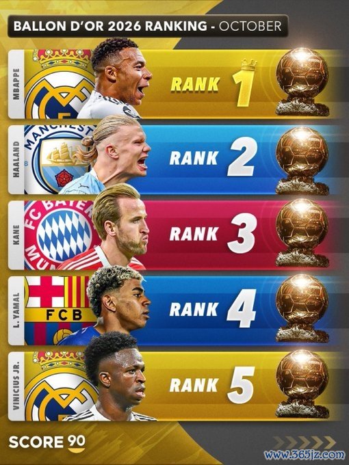 👀外媒发布2026年金球奖首期实力排行:姆巴佩居首,亚马尔第四
