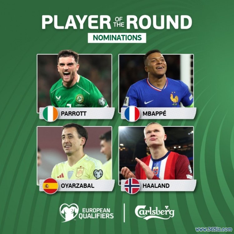 11月16日讯 欧足联公布了本轮欧洲世初赛最好球员候选,姆巴佩、哈兰德领衔。
