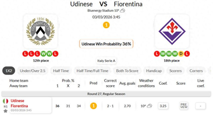 -The most recent games of Udinese consist of 3 consecutive defeats in Serie A