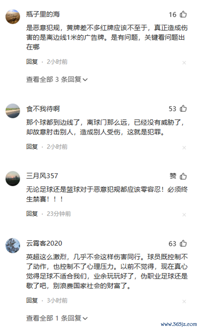 也有网友从时间角度分析:“阿谁球皆依然到边线了,离球门那么远,依然莫得恫吓了,还要成心用走去打击别东说念主,变成别东说念主受伤,这不只是犯规的问题了,致使触及到违章。”这种不雅点觉得,在无恫吓区域选择如斯热烈的犯规动作,其意图值得深究。