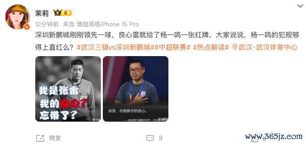 不少网友吐槽谈:“通常的犯规给深圳红牌,给武汉黄牌。真有你的张雷!”:“张雷纯和深圳有仇,一样的当作凭啥一红一黄?”而新鹏城跟队记者程文莉,更是径直在社媒晒图嘲讽张雷:“良心忘带了?”