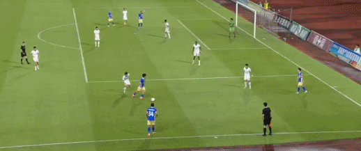第60分钟,马成浩连过两东说念主后射门,球击中门框弹出