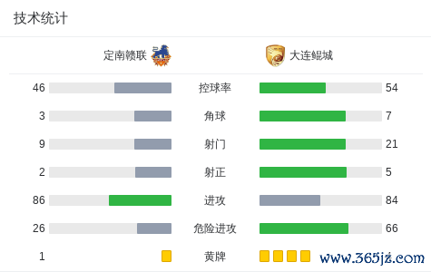 北京时辰10月25日中国足球甲级联赛 联赛 第28轮,定南赣联主场对阵大连鲲城。上半场尼扎木丁传中,埃里克斯无东说念主盯防破门。下半场邓淳泽传中,多米尼克巧射破门扳平比分,之后埃里克斯反击破门完成双响。最终定南赣联2-1送大连鲲城4连败。