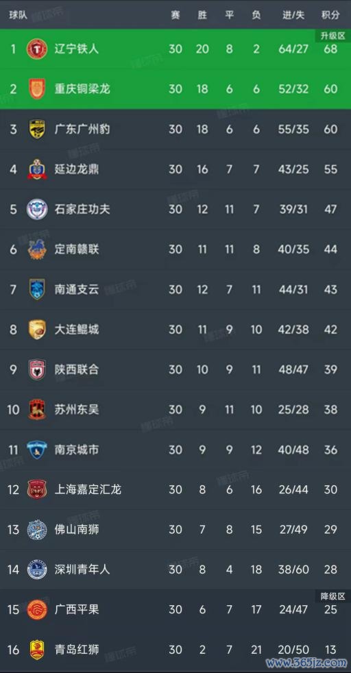 北京手艺11月8日,中甲联赛第30轮的比赛全部规定,冲超和左迁的球队出炉,咱们一谈望望最终的积分榜!