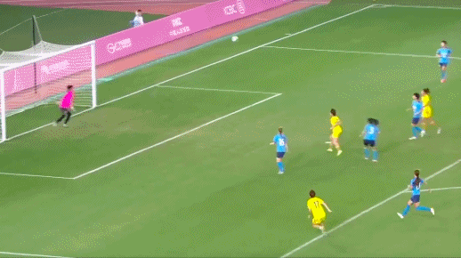 第31分钟,上海女足后防盯人不紧送大礼,韩旋抢在朱钰出击前,劲射破门,为江苏女足扳平比分。